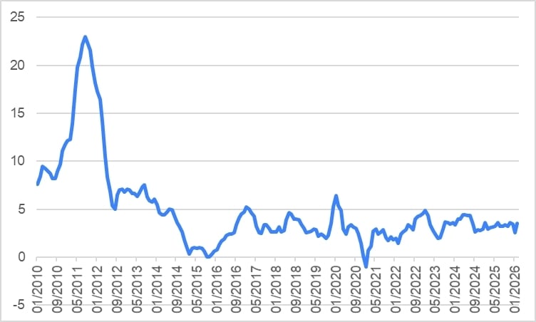 Để hiểu rõ mức độ nhạy cảm của rổ hàng hóa đối với biến động giá năng lượng, cần đặt trong bối cảnh quỹ đạo lạm phát của Việt Nam giai đoạn 2010 - 2026. Chuỗi số liệu chỉ số giá tiêu dùng (CPI) theo tháng cho thấy nền kinh tế đã trải qua nhiều chu kỳ lạm phát khác nhau, phản ánh sự tương tác phức tạp giữa giá năng lượng toàn cầu, chính sách điều hành trong nước và các cú sốc kinh tế vĩ mô. Phân tích dài hạn cho thấy năng lượng giữ vai trò then chốt trong cơ chế truyền dẫn lạm phát, đặc biệt thông qua các kênh chi phí như vận tải, sản xuất công nghiệp, xây dựng và dịch vụ.