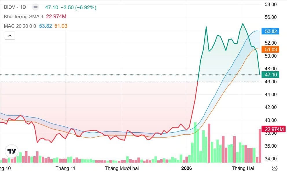 Diễn biến tiêu cực của BID đến ngay sau thông tin Hội đồng quản trị Ngân hàng ngày 9/2 đã thông qua nghị quyết điều chỉnh phương án chào bán cổ phiếu riêng lẻ nhằm tăng vốn. Theo kế hoạch mới, ngân hàng dự kiến phát hành hơn 263,3 triệu cổ phiếu với giá 38.900 đồng/cổ phiếu, tương đương khoảng 3,75% tổng số cổ phiếu đang lưu hành tại thời điểm 31/3/2025.