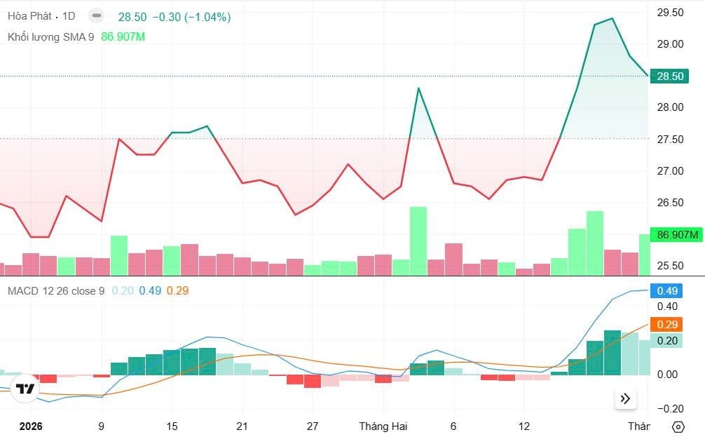 Ở góc nhìn cơ bản, các báo cáo phân tích gần đây vẫn duy trì đánh giá tích cực đối với triển vọng Hòa Phát, dù phần lớn kỳ vọng đã phản ánh vào giá. Nhu cầu thép nội địa được dự báo cải thiện nhờ giải ngân đầu tư công và sự phục hồi dần của thị trường bất động sản. Sản lượng thép xây dựng có thể tiếp tục tăng trong năm nay khi nhiều dự án hạ tầng quy mô lớn bước vào giai đoạn thi công cao điểm.