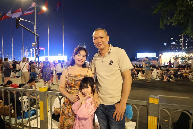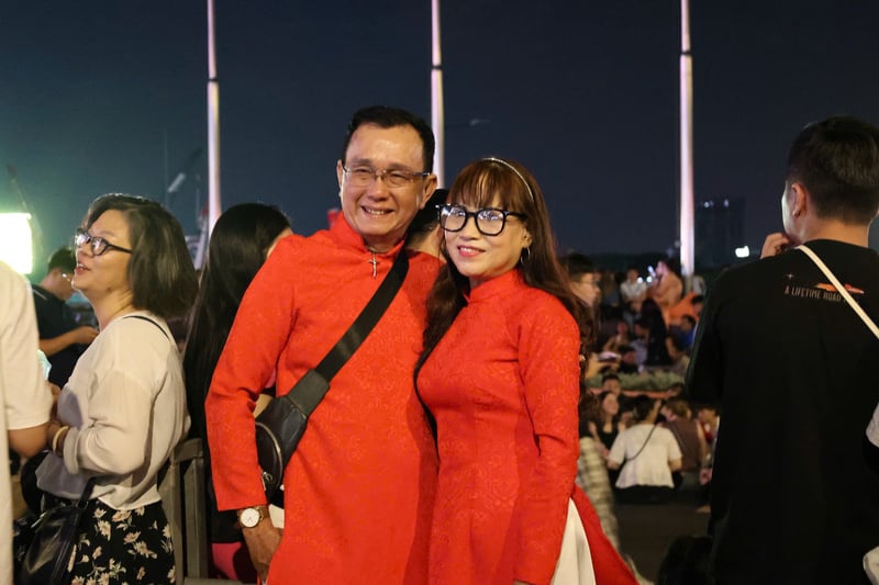 Anh Trần Văn Ánh (40 tuổi, ngụ phường Bình Trưng) cho biết, anh và gia đình thực sự choáng ngợp trước màn pháo hoa rực rỡ trong đêm giao thừa. "Từng chùm pháo bung nở liên tiếp, sắc màu phủ kín bầu trời, nhìn mà nổi da gà", anh chia sẻ.