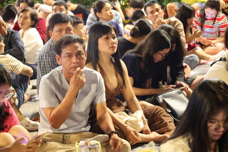 Nhiều gia đình, bạn trẻ chọn cho mình những vị trí thuận lợi để cùng nhau chiêm ngưỡng trọn vẹn đêm hội ánh sáng. Ảnh: Minh Anh.