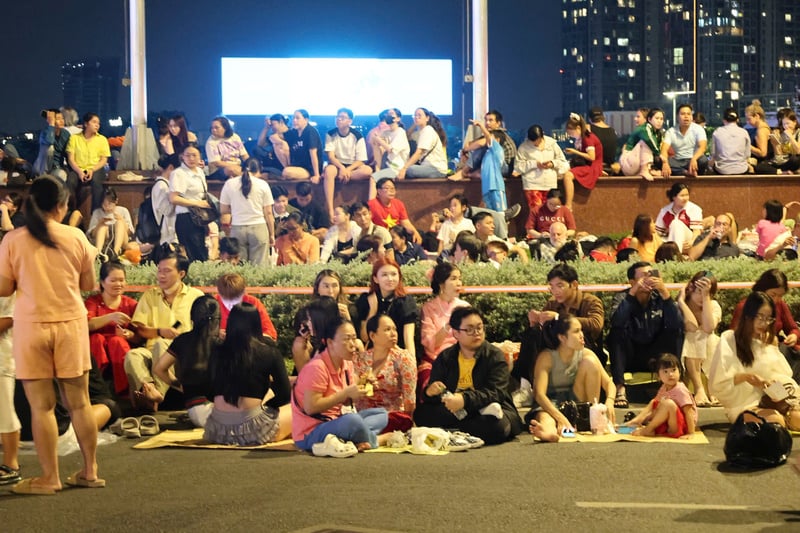 Không khí náo nức của người dân thành phố khi tập trung đông đúc tại các khu vực công cộng chờ đón giao thừa. Ảnh: Minh Anh.