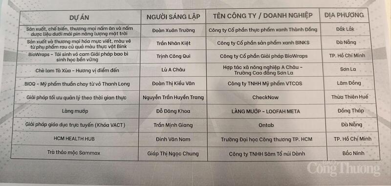 Danh sách Top 10 dự án vào chung kết Chương trình phát triển dự án khởi nghiệp Quốc gia 2025. Ảnh: HN