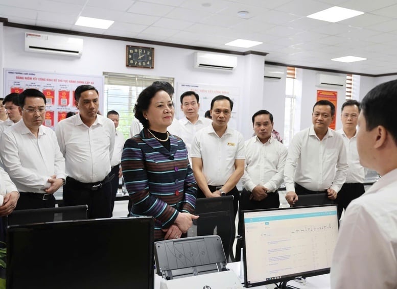 Phó Thủ tướng Phạm Thị Thanh Trà kiểm tra hoạt động của Trung tâm Phục vụ hành chính công phường Cam Đường, tỉnh Lào Cai - Ảnh: VGP/Thu Giang