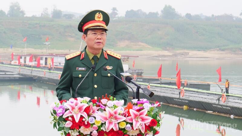 Đại tướng Nguyễn Tân Cương, Tổng Tham mưu trưởng Quân đội Nhân dân Việt Nam, Thứ trưởng Bộ Quốc phòng phát biểu Lễ thông xe cầu phao Đoan Hùng, tỉnh Phú Thọ.