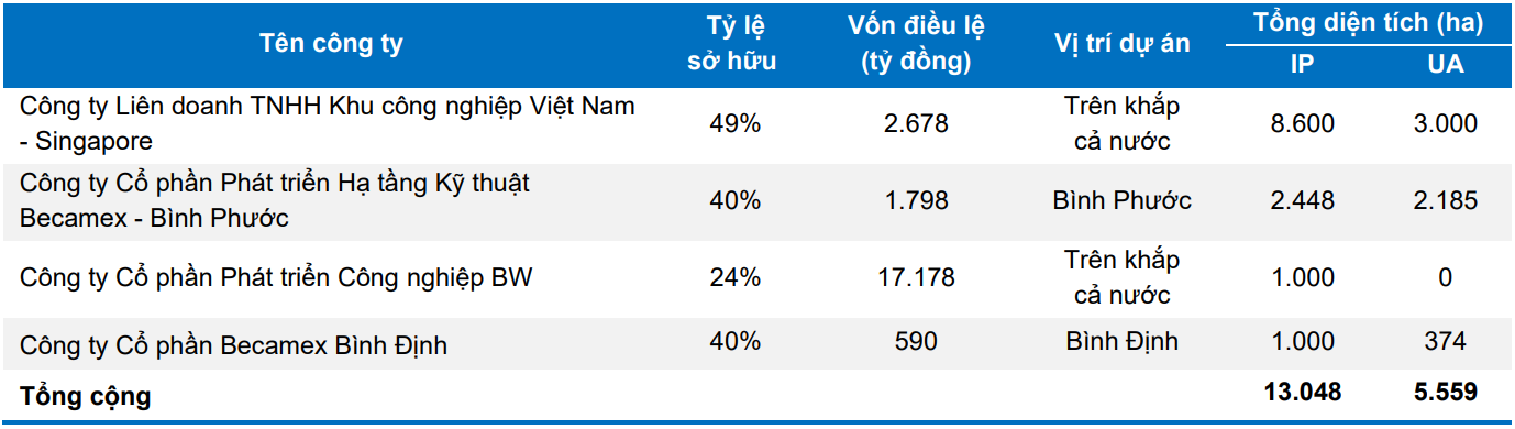 Song song với việc phát triển các khu công nghiệp mới, Becamex IDC còn xây dựng hệ sinh thái doanh nghiệp thông qua mạng lưới liên doanh và công ty liên kết. Trong đó, VSIP (Vietnam Singapore Industrial Park) được xem là trụ cột quan trọng nhất. Becamex hiện nắm giữ 49% cổ phần tại liên doanh này, trong khi đối tác còn lại là Tập đoàn Sembcorp của Singapore.