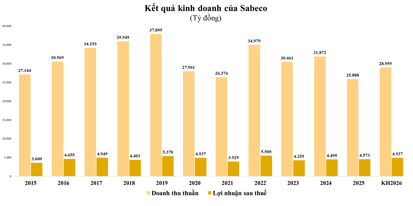 Trong bối cảnh đó, Sabeco ghi nhận doanh thu năm 2025 giảm 19% so với năm 2024, đạt 25.888 tỷ đồng nhưng lợi nhuận sau thuế vẫn đạt 4.573 tỷ đồng, tăng nhẹ 1,7% so với năm trước.