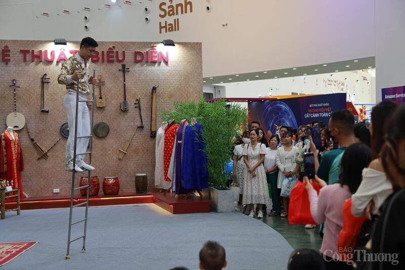 Tiếp nối là chương trình biểu diễn xiếc kết hợp âm nhạc, thu hút sự quan tâm và khiến khán giả vỗ tay không ngớt. Nhiều du khách nước ngoài thích thú ghi hình, hòa mình vào không khí sôi động của hội chợ.
