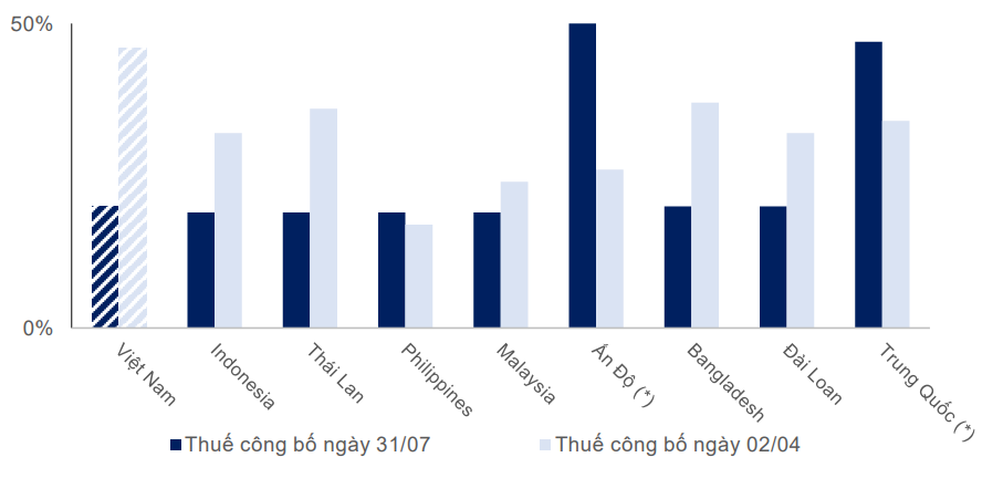 margin: 15px auto;" />Theo MBS Research, mức thuế Mỹ áp cho hàng hóa nhập khẩu từ Việt Nam hiện quanh 19%, tương đương với Thái Lan, Indonesia hay Malaysia và thấp hơn đáng kể so với Ấn Độ. Trong bối cảnh đó, lợi thế cạnh tranh của Việt Nam vẫn đến từ năng lực sản xuất, chi phí lao động và mạng lưới 16 hiệp định thương mại tự do, giúp doanh nghiệp FDI đa dạng hóa thị trường xuất khẩu.