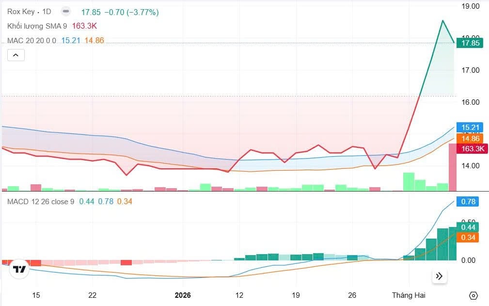 Đà tăng của cổ phiếu phần nào phản ánh kết quả kinh doanh tích cực trong năm 2025. Rox Key lần đầu tiên ghi nhận doanh thu thuần vượt mốc 1.000 tỷ đồng, đạt hơn 1.028 tỷ đồng, tăng 7% so với năm trước. Lợi nhuận sau thuế đạt hơn 269 tỷ đồng, gấp 5,3 lần cùng kỳ và là mức cao nhất kể từ khi doanh nghiệp công bố số liệu tài chính, đồng thời vượt kế hoạch đề ra.