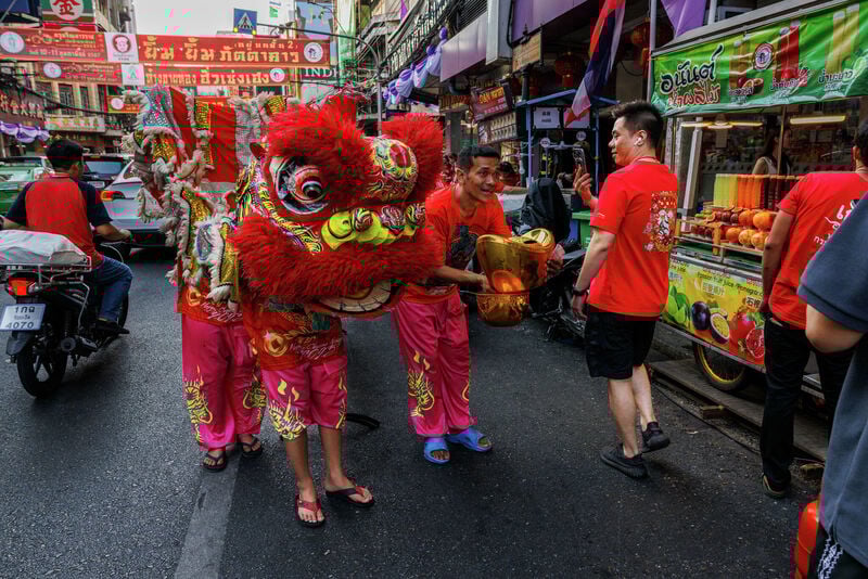 Ở Bangkok, Tết Nguyên đán là một trong những dịp lễ hội lớn nhất năm, đặc biệt sôi động tại khu phố người Hoa Yaowarat. Những con phố vốn đông đúc quanh năm nay càng trở nên rực rỡ với đèn lồng đỏ treo kín, sân khấu biểu diễn dựng khắp nơi và các đoàn múa lân - múa rồng nối dài suốt nhiều giờ.