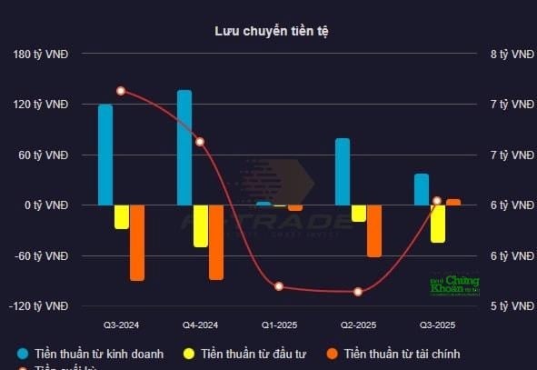 Tuy nhiên, dòng tiền cho thấy bức tranh hai mặt. Dòng tiền thuần từ hoạt động kinh doanh đạt 123,7 tỷ đồng, thấp hơn nhiều so với mức 297,65 tỷ đồng cùng kỳ 2024 nhưng vẫn là điểm sáng quan trọng, đặc biệt trong bối cảnh công nợ thu được nhanh hơn và chi phí vận hành đang được kiểm soát tốt hơn. Ngược lại, dòng tiền từ hoạt động đầu tư và tài chính đều âm, kéo theo lưu chuyển tiền thuần 9 tháng âm hơn 582 triệu đồng.<#p>