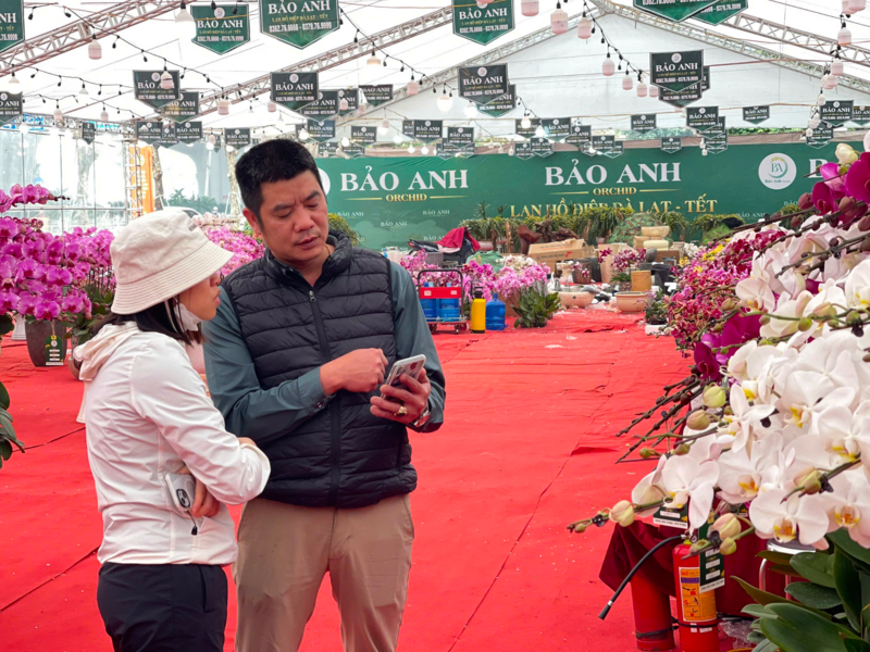 Không khí trao đổi, mặc cả, hỏi han diễn ra liên tục, tạo nên nhịp điệu sôi động đặc trưng của chợ hoa những ngày cuối năm. Hình ảnh các tiểu thương luôn tục trực để tư vấn chi tiết cho từng khách hàng trở nên nổi bật. Các tiểu thương chia sẻ khách hàng của họ thường mong muốn chọn được chậu lan phù hợp với với không gian, số cành mang ý nghĩa may mắn, đến cách chăm sóc để hoa nở đúng mùng Một. Không khí trao đổi, mặc cả, hỏi han diễn ra liên tục, tạo nên nhịp điệu sôi động đặc trưng của chợ hoa những ngày cuối năm.