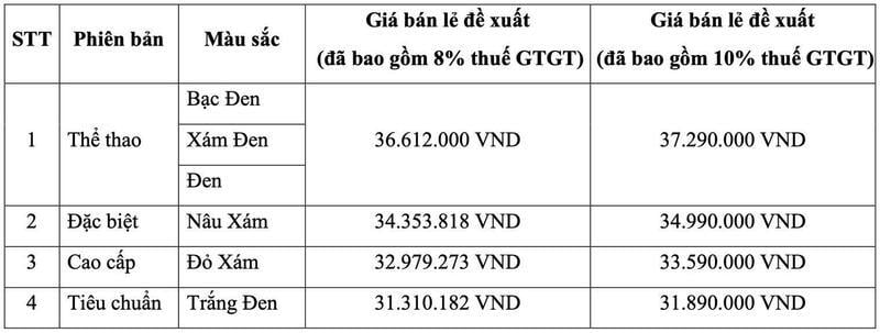 Giá bán lẻ đề xuất của Honda Vision 2026 cho các phiên bản dao động 31,89-37,29 triệu đồng. Mức giá này không đổi so với chiếc Vision 2025. Như vậy, Honda Vision sẽ tiếp tục cạnh tranh cùng các mẫu xe tay ga cùng tầm giá như Yamaha Janus, Freego, SYM Priti 125. Đây cũng là khoảng giá có các đại diện thuần điện như VinFast Vero X 2025, Vento Neo hay Yadea Voltguard, Datbike Quantum S3.