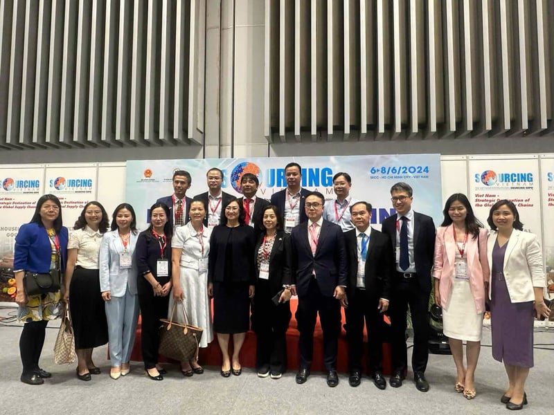 Tham tán thương mại Lê Phú Cường (trái ảnh) kết nối doanh nghiệp tại Vietnam International Sourcing.