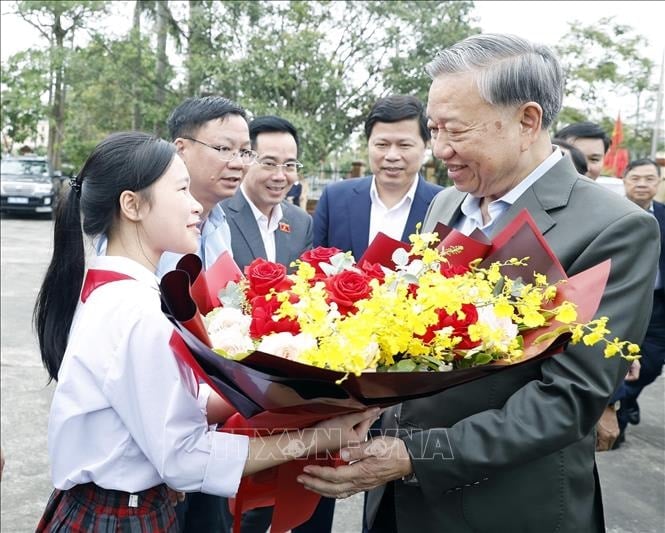 Phát biểu tại Hội nghị tiếp xúc cử tri, Tổng Bí thư Tô Lâm bày tỏ vui mừng cùng Đoàn đại biểu Quốc hội tỉnh tiếp xúc với đại biểu cử tri 3 xã: Kiến Xương, Lê Lợi và Quang Lịch - vùng đất giàu truyền thống văn hóa, cách mạng, hiếu học; nơi người dân luôn cần cù, đoàn kết, nghĩa tình, đóng góp quan trọng vào công cuộc xây dựng và bảo vệ Tổ quốc.