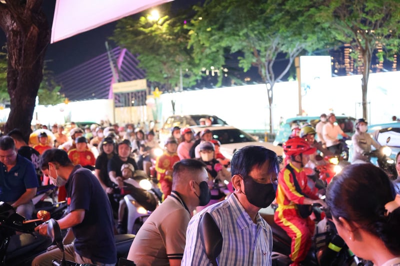 Càng về khuya, lượng phương tiện và người dân đổ về khu vực trung tâm càng đông đúc. Ảnh: Minh Anh