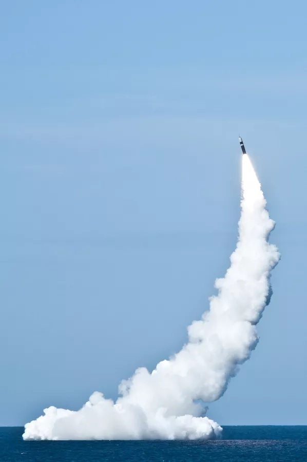 Khả năng mang nhiều đầu đạn và bay xa hơn 12.000 km khiến Trident II D5 trở thành biểu tượng răn đe hạt nhân trên biển. Ảnh: U.S. Navy.