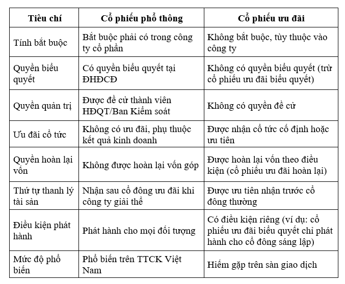 margin: 15px auto;" />So sánh giữa cổ phiếu phổ thông và cổ phiếu ưu đãi