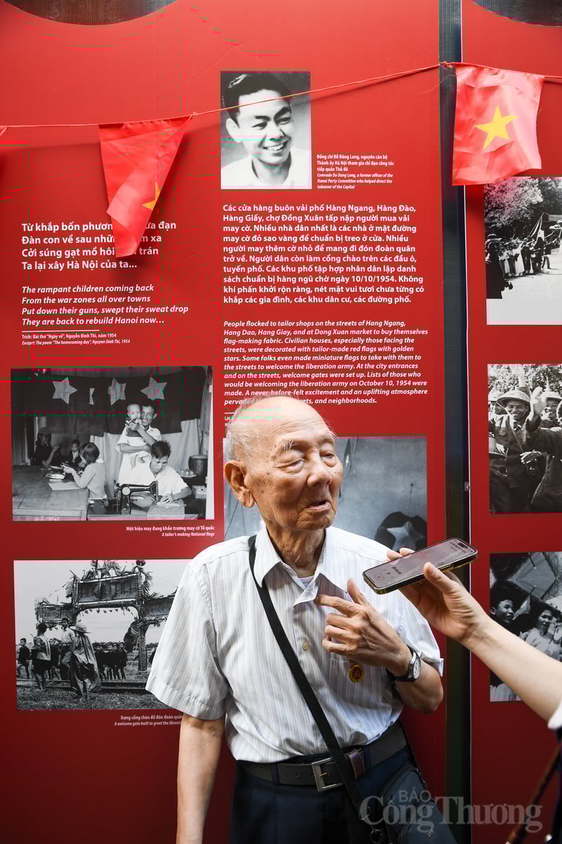 Ông Đỗ Đức Long có mặt tại lễ khai mạc trưng bày chuyên đề Vang mãi khúc khải hoàn. Đứng giữa những bức ảnh, tài liệu về Hà Nội kháng chiến năm 1946 và Hà Nội ngày tiếp quản 10/10/1954, ông Long không khỏi xúc động. Những ký ức về những ngày đặc biệt của Hà Nội 70 năm trước mà ông góp phần vào lại ùa về sống động như mới vừa hôm qua.