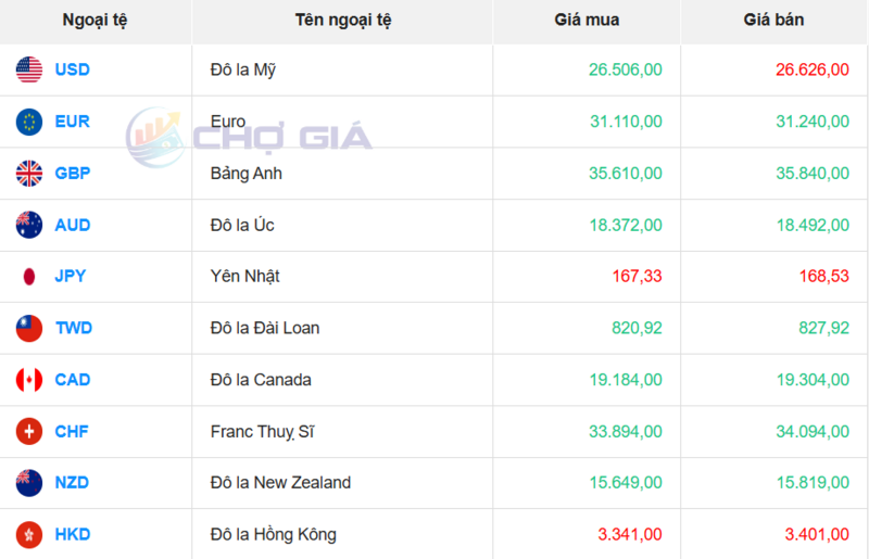 Ngân hàng NCB, VietBank đang bán chuyển khoản Đô la Mỹ với giá cao nhất là: 1 USD = 26.307 VND