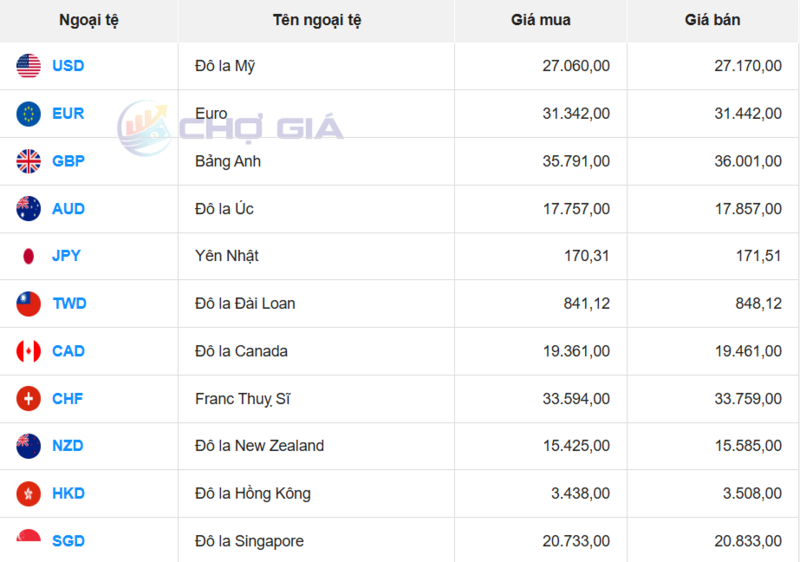 margin: 15px auto;" />Tỷ giá USD tại một số ngân hàng hôm nay. Nguồn: Webgia.com.