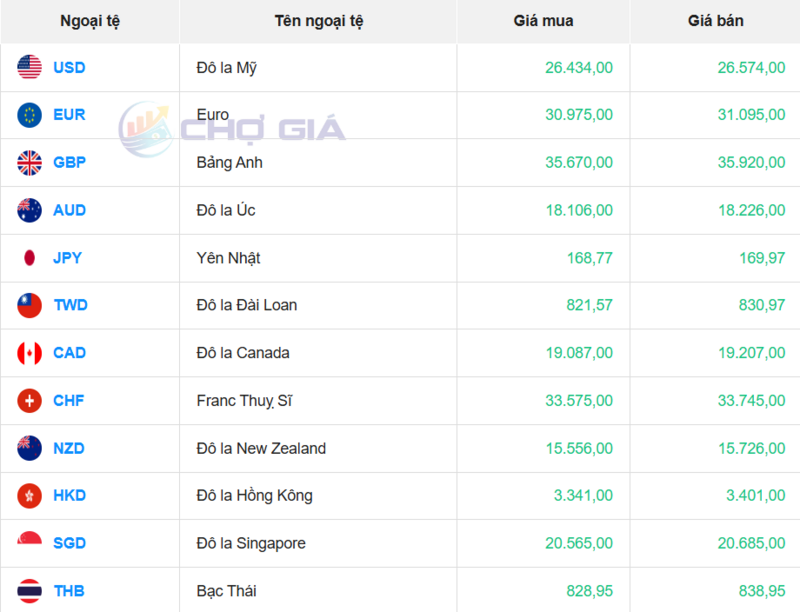 Cụ thể, tại Ngân hàng Vietcombank, tỷ giá USD hiện ở mức 25.790 - 26.180 đồng/USD, tăng 70 đồng ở cả chiều mua và chiều bán so với phiên giao dịch trước đó.