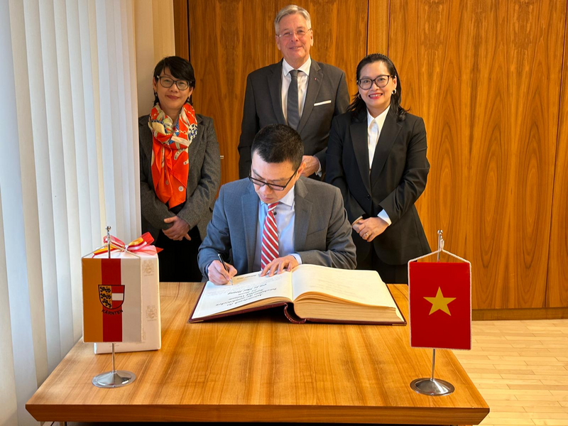 Ngày 4/2/2026, Đại sứ Đặc mệnh toàn quyền Việt Nam tại Cộng hòa Áo Vũ Lê Thái Hoàng đến chào xã giao Thủ hiến bang Carinthia, Ngài Tiến sỹ Peter Kaiser gặp Thứ trưởng Bộ Tài chính Áo phụ trách khoáng sản Andreas Reichardt và làm việc với Treibacher - công ty tiêu biểu địa phương trong lĩnh vực khai khoáng, hoá chất. Tham tán thương mại Đinh Thị Hoàng Yến tháp tùng Đại sứ làm việc với công ty và tham quan nhà máy.