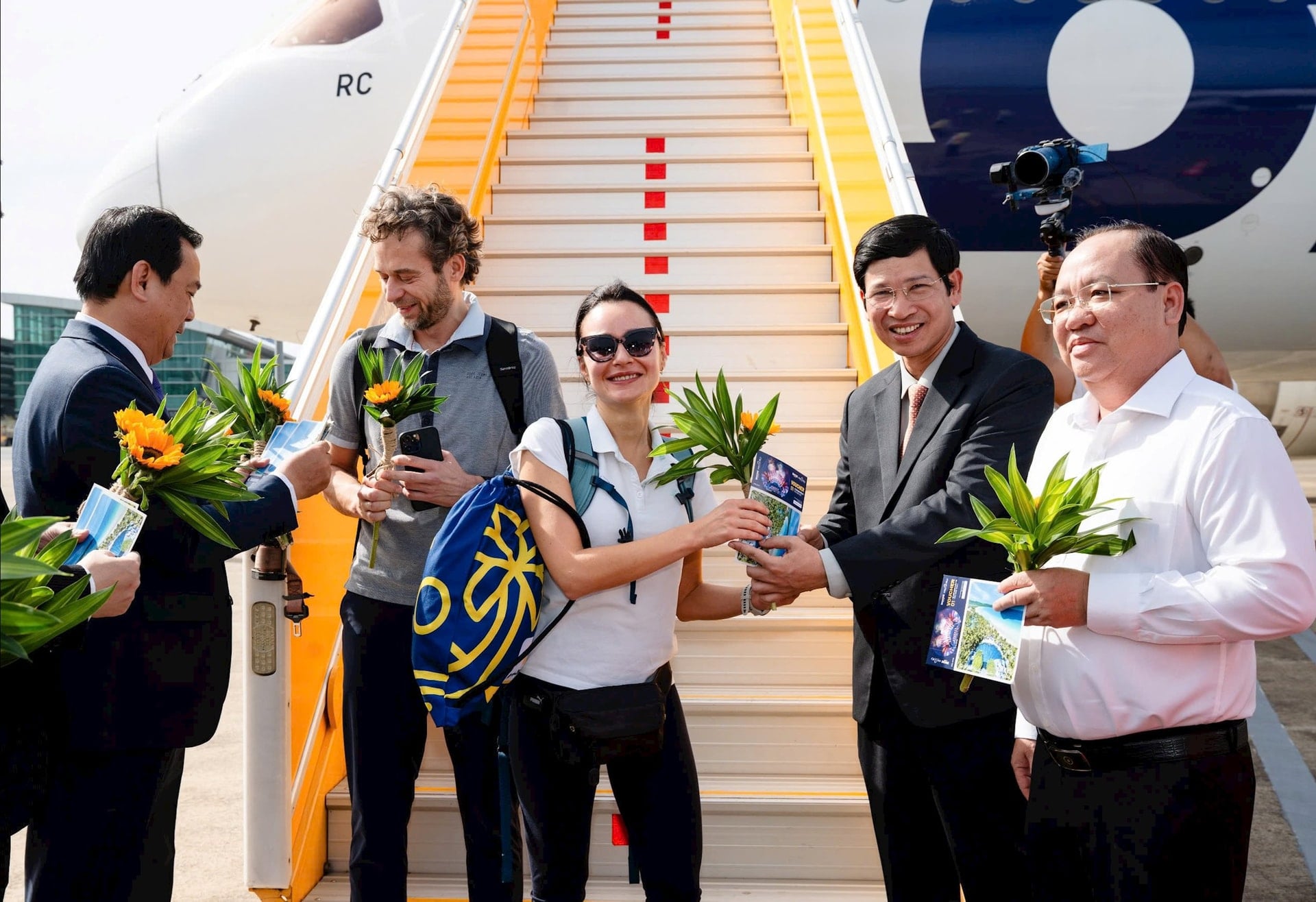 Ngoài ra, toàn bộ hành khách trên chuyến bay may mắn đều được tặng hoa chào mừng và vé xem show “Kiss of the Sea” tại thị trấn Hoàng Hôn (Phú Quốc).
