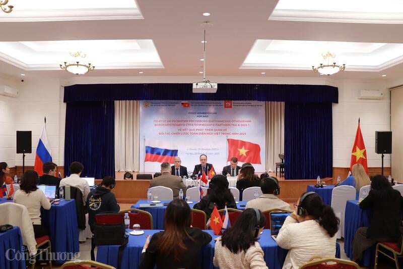Sáng 29/12, Đại sứ quán Nga, Đại diện thương mại Nga và Trung tâm Khoa học và Văn hóa Nga tại Việt Nam tổ chức “Họp báo về kết quả phát triển quan hệ đối tác chiến lược toàn diện Nga - Việt trong năm 2025”.
