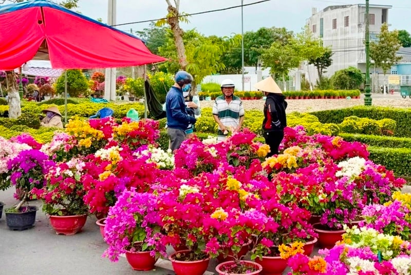 Song song với nhịp sản xuất tại vườn, chợ hoa Xuân (phường Long Châu, tỉnh Vĩnh Long) bắt đầu nhộn nhịp khi các nhà vườn, tiểu thương đồng loạt đưa hoa, cây kiểng ra phố. Năm nay, chợ hoa được tổ chức với quy mô hơn 800 lô kinh doanh, mở rộng cả về không gian lẫn số lượng gian hàng so với các năm trước.