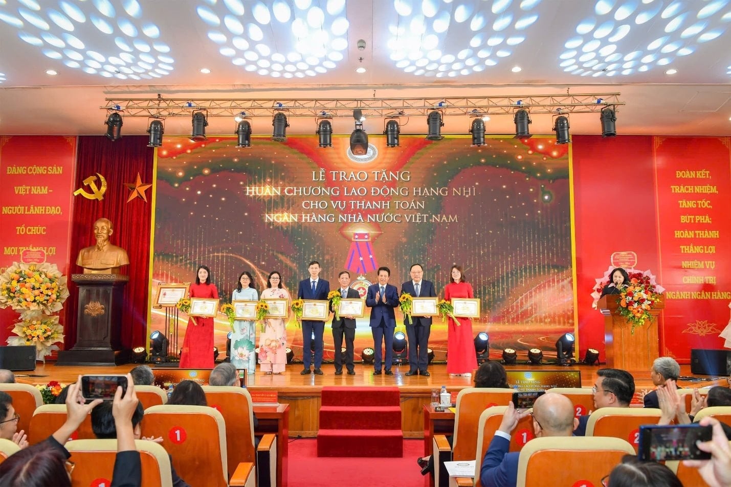 Với những kết quả và thành tựu nổi bật đó, Vụ Thanh toán đã vinh dự được Chủ tịch nước trao tặng Huân chương Lao động hạng Nhì. Thừa ủy quyền của Chủ tịch nước, Thống đốc Nguyễn Thị Hồng đã trao tặng Huân chương Lao động hạng Nhì cho Vụ Thanh toán.