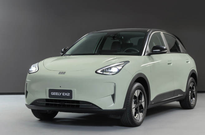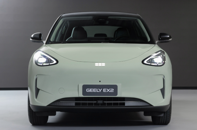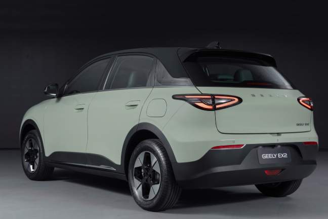 Geely EX2 theo đuổi phong cách thiết kế bo tròn chủ đạo, với các đường nét mềm mại và thân thiện. Cụm đèn LED dạng oval tích hợp đèn định vị ban ngày tạo điểm nhấn phía trước, trong khi tay nắm cửa bán ẩn giúp cải thiện tính khí động học và tăng vẻ hiện đại.
