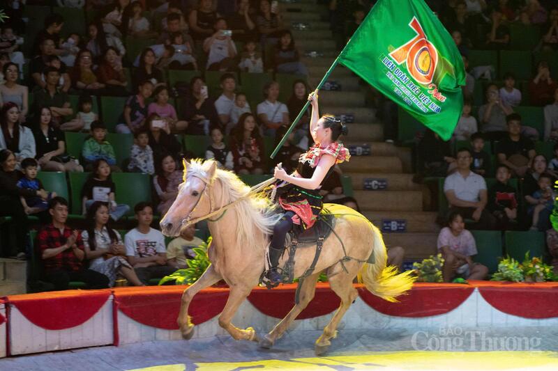 Những bước phi nước đại điệu nghệ của ngựa xiếc, kết hợp các động tác biểu diễn khéo léo trên mình ngựa đã tạo nên tiết mục mãn nhãn, mang đến cảm giác tươi mới, lạc quan và tràn đầy hứng khởi.