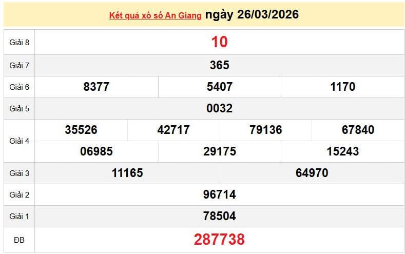 XSAG 26/3, KQXSAG 26/3. Xem lại kết quả xổ số An Giang ngày 26/3/2026