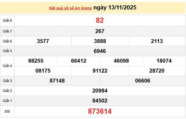 XSAG 13/11, KQXSAG 13/11. Xem lại kết quả xổ số An Giang ngày 13/11/2025