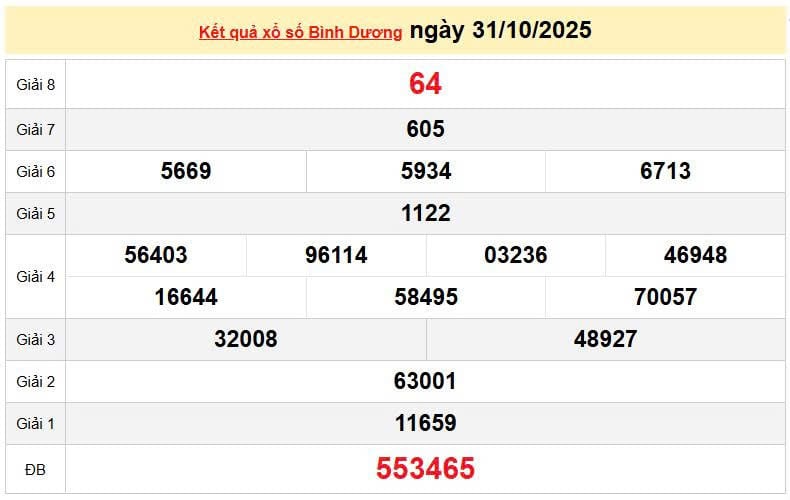XSBD 31/10, KQXSBD 31/10. Xem lại kết quả xổ số Bình Dương ngày 31/10/2025