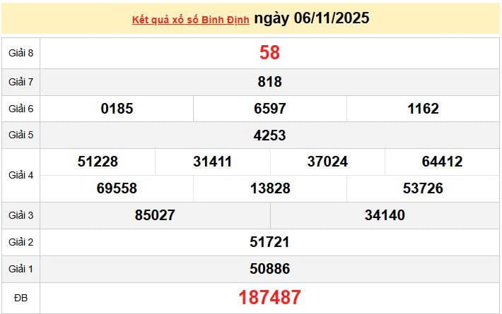 XSBDI 6/11 KQXSBDI 6/11. Xem lại kết quả xổ số Bình Định ngày 6/11/2025