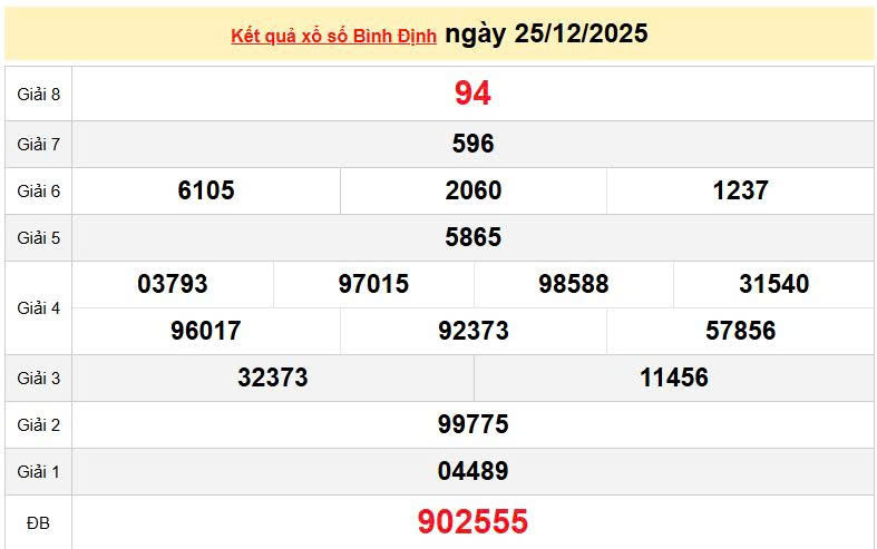 XSBDI 25/12 KQXSBDI 25/12 Xem lại kết quả xổ số Bình Định ngày 25/12/2025