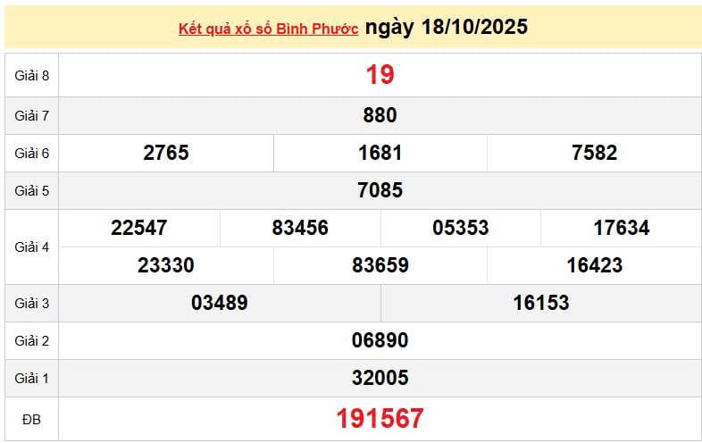 XSBP 18/10, KQXSBP 18/10. Xem lại kết quả xổ số Bình Phước ngày 18/10/2025
