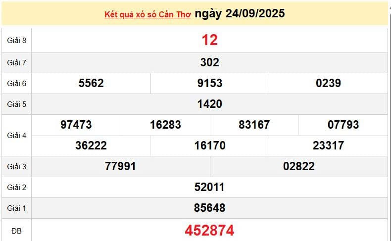 XSCT 24/9, KQXSCT 24/9. Xem lại kết quả xổ số Cần Thơ ngày 24/9/2025