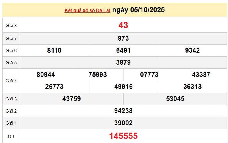 XSDL 5/10, KQXSDL 5/10. Xem lại kết quả xổ số Đà Lạt ngày 5/10/2025