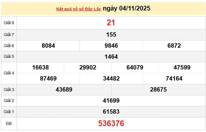 XSDLK 4/11, KQXSDLK 4/11. Xem lại kết quả xổ số Đắk Lắk ngày 4/11/2025