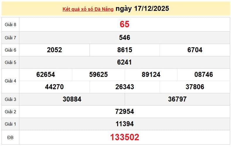 XSDNA 17/12, KQXSDNA 17/12. Xem lại kết quả xổ số Đà Nẵng ngày 17/12/2025