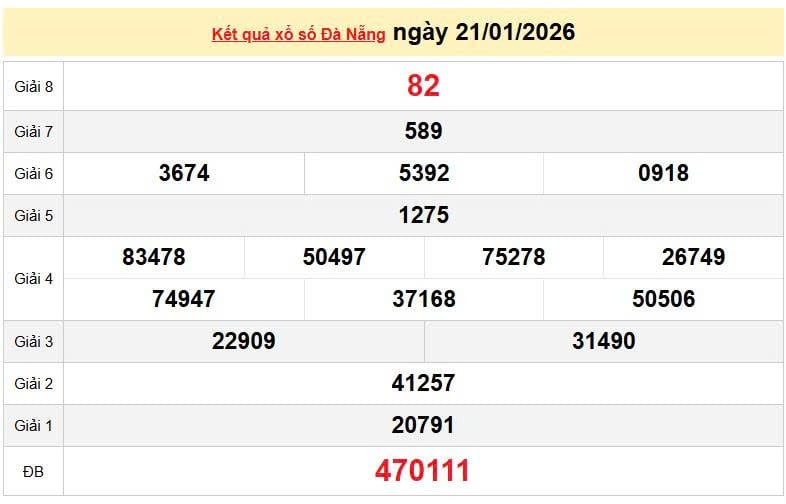 XSDNA 21/1, KQXSDNA 21/1. Xem lại kết quả xổ số Đà Nẵng ngày 21/1/2026