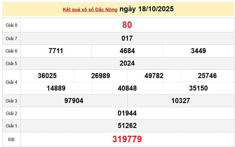XSDNO 18/10, KQXSDNO 18/10. Xem lại kết quả xổ số Đắk Nông ngày 18/10/2025