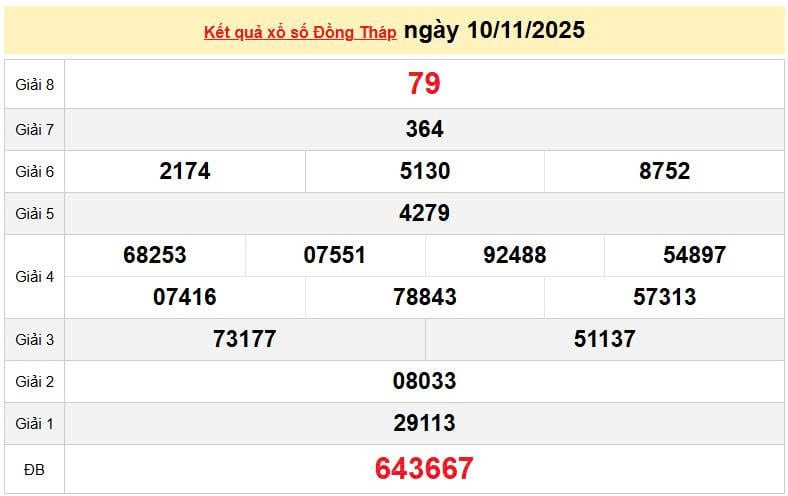 XSDT 10/11, KQXSDT 10/11. Xem lại kết quả xổ số Đồng Tháp ngày 10/11/2025