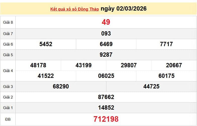 XSDT 2/3, KQXSDT 2/3. Xem lại kết quả xổ số Đồng Tháp ngày 2/3/2026