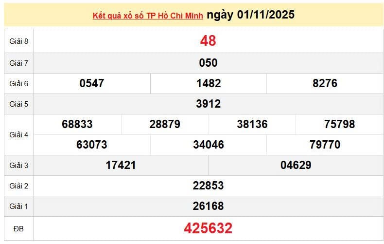 XSHCM 1/11, KQXSHCM 1/11. Xem lại kết quả xổ số Hồ Chí Minh ngày 1/11/2025