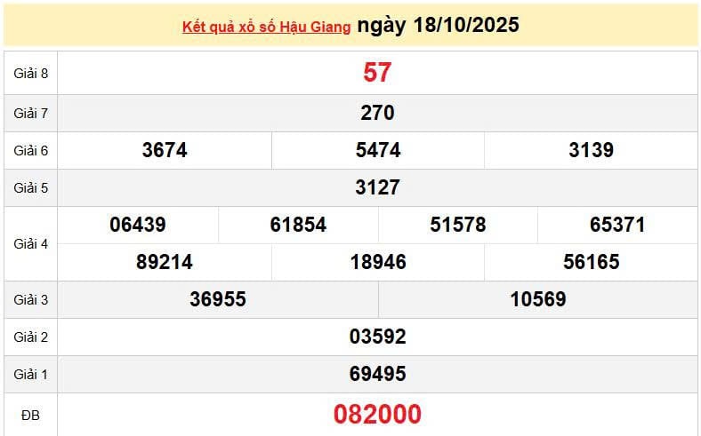 XSHG 18/10, KQXSHG 18/10. Xem lại kết quả xổ số Hậu Giang ngày 18/10/2025
